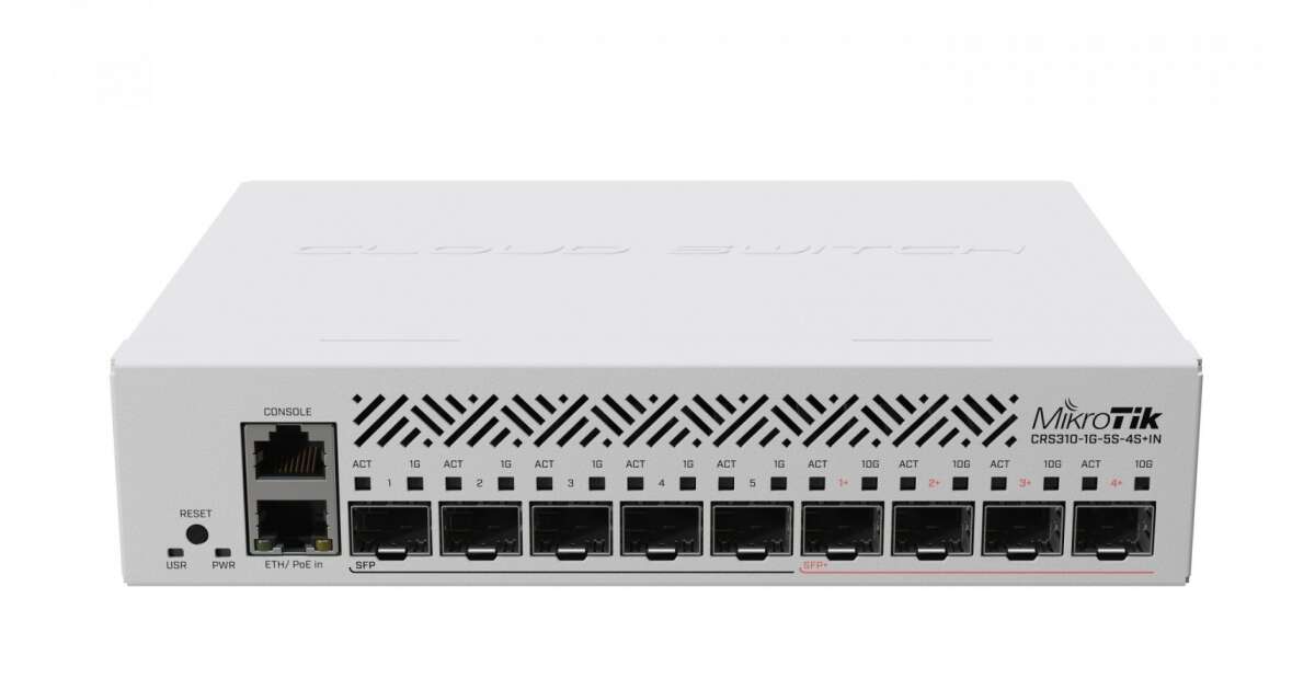 MikroTik CRS310-1G-5S-4S+IN Cloud Router Switch este soluția perfectă pentru cei care caută o rețea fiabilă și rapidă la un preț accesibil. Utilizarea cablului optic reduce și riscul de interferențe electromagnetice.