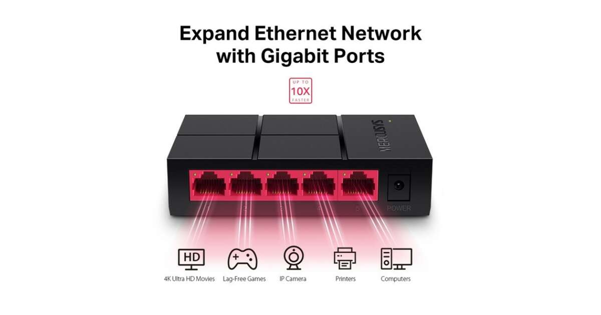 Mercusys MS105G Switch Gigabit de birou cu 5 porturi: Extinde-ți rețeaua de acasă ușor 🏠