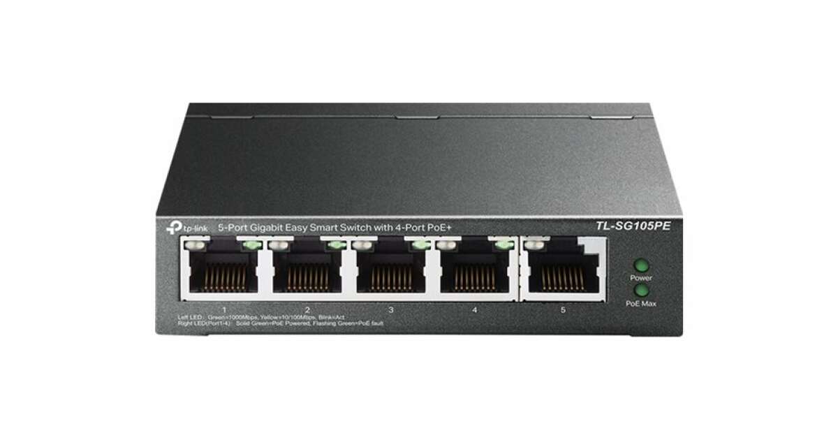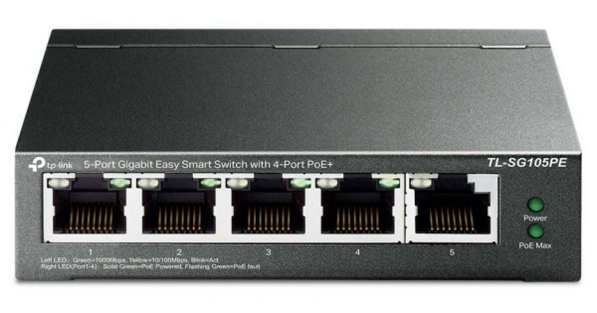 Acest switch Gigabit Easy Smart TP-Link TL-SG105PE cu 5 porturi este perfect pentru rețelele de acasă sau pentru micile afaceri. Cu 4 porturi PoE+, poți conecta și alimenta cu ușurință dispozitive compatibile PoE, precum camere IP sau puncte de acces, fără sursă de alimentare externă. Funcțiile inteligente integrate asigură o configurare simplă și o funcționare fiabilă.