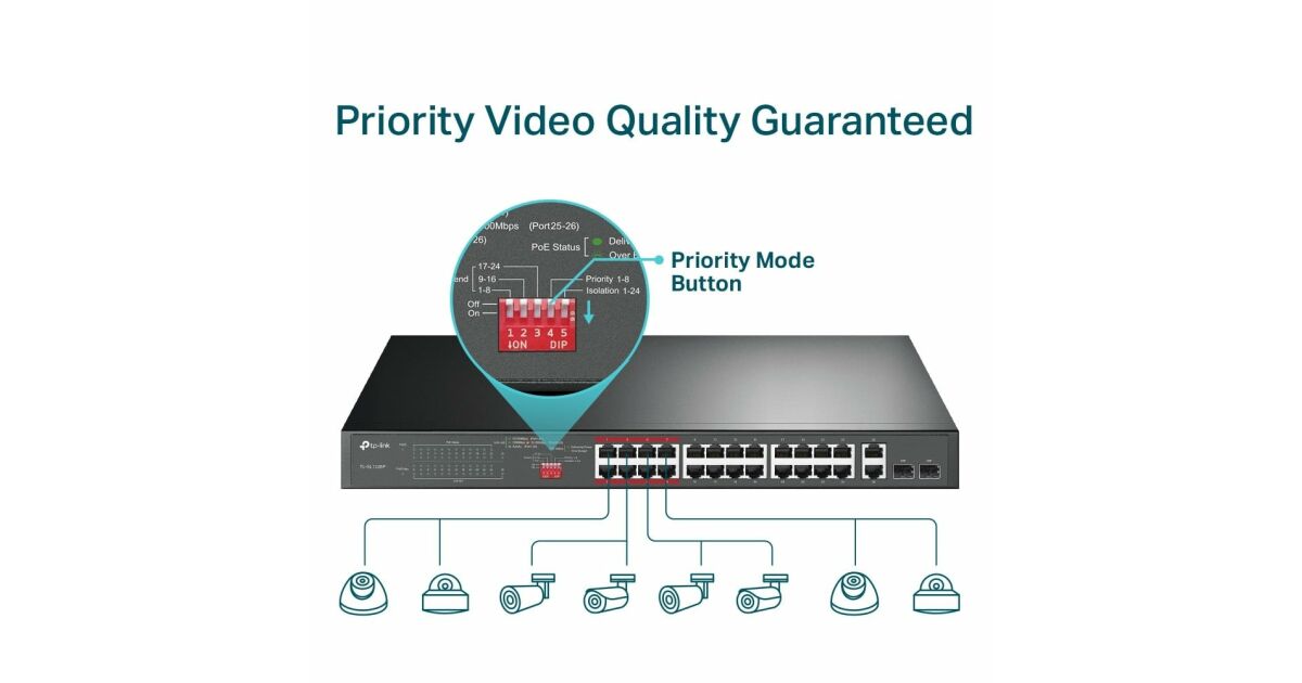 Acest switch Gigabit PoE+ TP-Link TL-SL1226P cu 24 de porturi este soluția ideală pentru rețelele de acasă, birou sau pentru mici afaceri. Datorită celor 24 de porturi PoE+, poți conecta cu ușurință camere IP, telefoane VoIP și alte dispozitive PoE, fără a mai fi nevoie de surse de alimentare separate. Cele două sloturi Gigabit SFP oferă o extindere mai flexibilă a rețelei.
