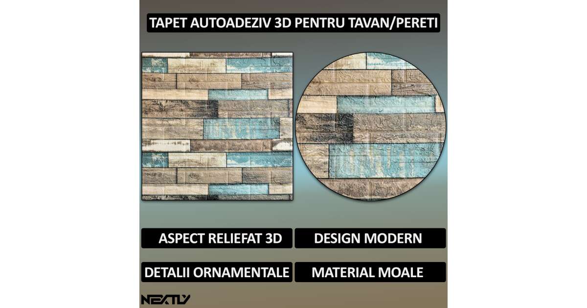 Set 10 x tapet autoadeziv 3D NEXTLY, design caramida. pentru perete sau tavan, waterproof, ajustabil, adeziv puternic, usor de montat, suprafata acoperire 5.3 mp, 70x77 cm, cod 61 Descriere