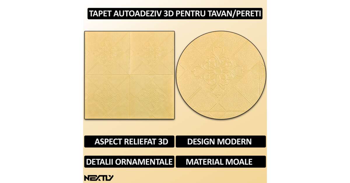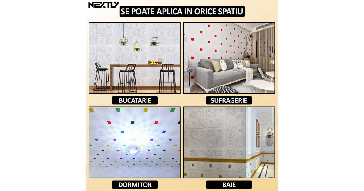 Set 30 x tapet autoadeziv 3D NEXTLY, design modern, pentru perete sau tavan, waterproof, ajustabil, adeziv puternic, usor de montat, suprafata acoperire 14.7 mp, 70x70 cm, cod 77 Descriere