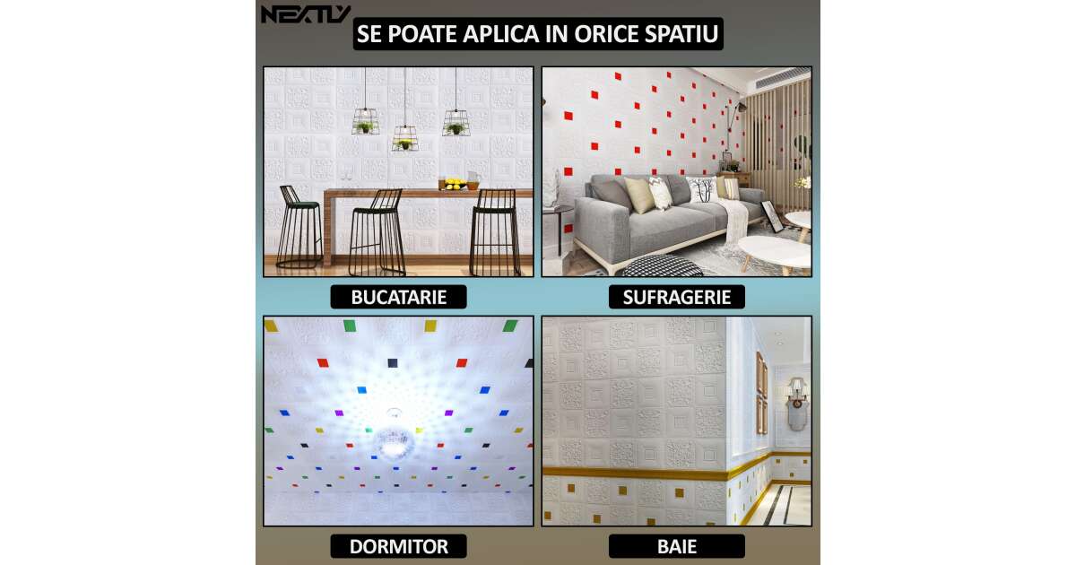 Set 40 x tapet autoadeziv 3D NEXTLY, design caramida. pentru perete sau tavan, waterproof, ajustabil, adeziv puternic, usor de montat, suprafata acoperire 21.2 mp, 70x77 cm, cod 61 Descriere