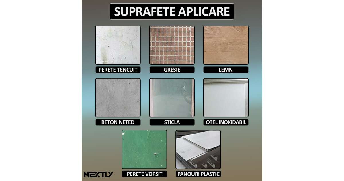 Tapetă autocolantă NEXTLY poate fi aplicată pe numeroase suprafețe, inclusiv: