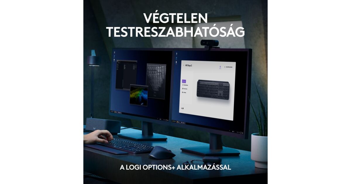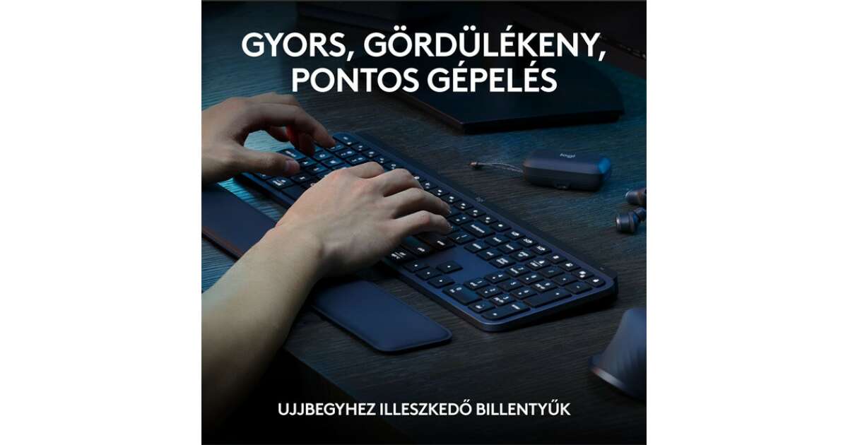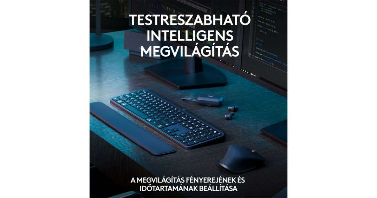 - Iluminare inteligentă de fundal: Tastele se aprind automat când apropii mâna, iar luminozitatea se adaptează la mediul înconjurător. Poți personaliza iluminarea cu aplicația Logi Options+.