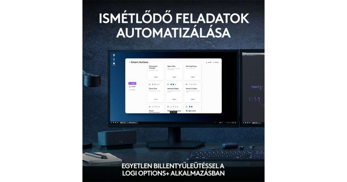 - Smart Actions: Automatizează sarcinile repetitive cu ajutorul aplicației Logi Options+ (compatibilă cu Windows și macOS).