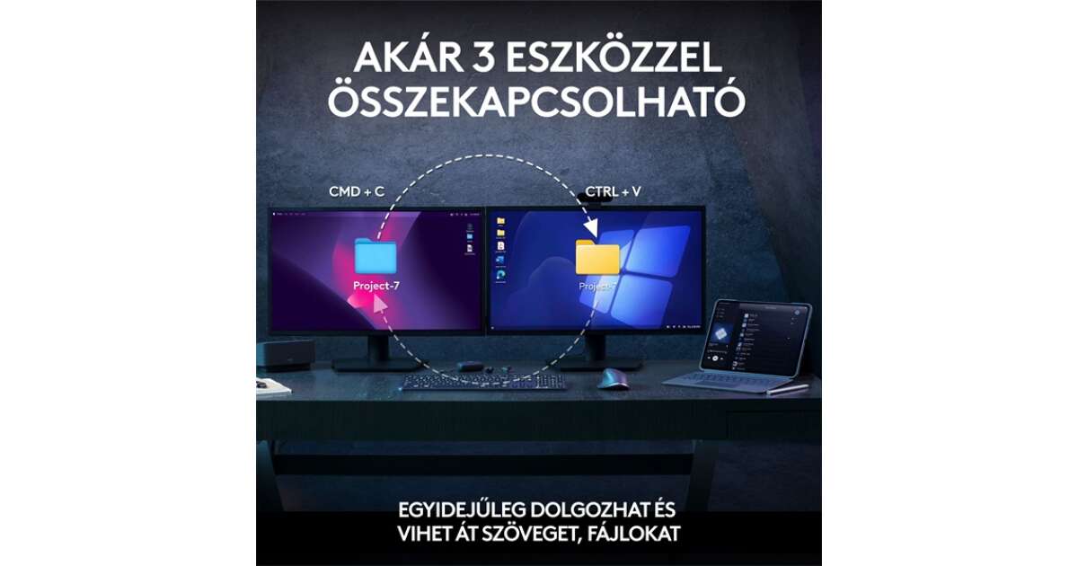 - Compatibilitate multi-dispozitiv: Comută ușor între până la 3 dispozitive cu o singură apăsare de buton (compatibilă cu Windows, macOS, ChromeOS).