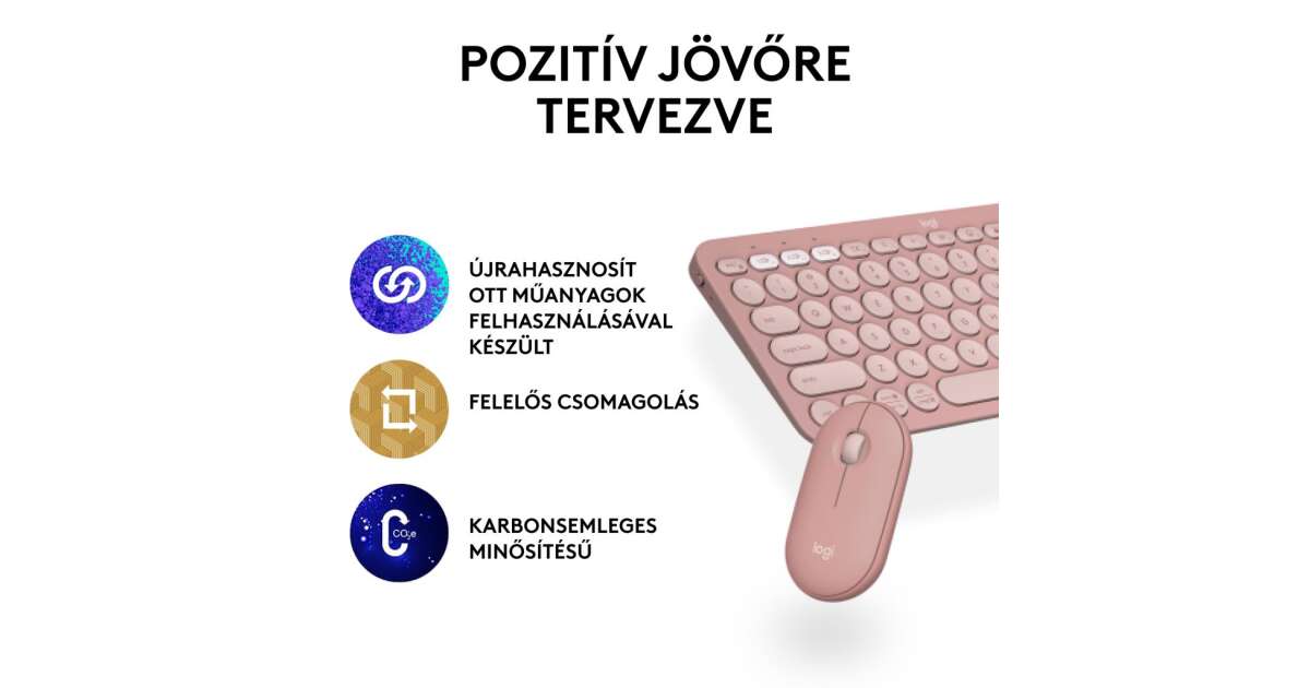 Acest set roz, modern, Logitech Pebble 2 Combo este alegerea perfectă pentru oricine caută un set de tastatură și mouse compact, portabil și extrem de silențios. Designul minimalist și materialele de înaltă calitate garantează un aspect elegant și durabilitate. Atât tastatura, cât și mouse-ul sunt fabricate din plastic reciclat, ceea ce îl face o alegere ecologică. ♻️
