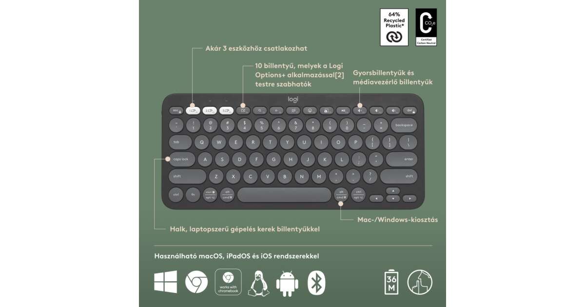 Tastatura Bluetooth Logitech Pebble Keys 2 K380s, Multi-Device, Tonal graphite (920-011851) (920-011851) Descriere