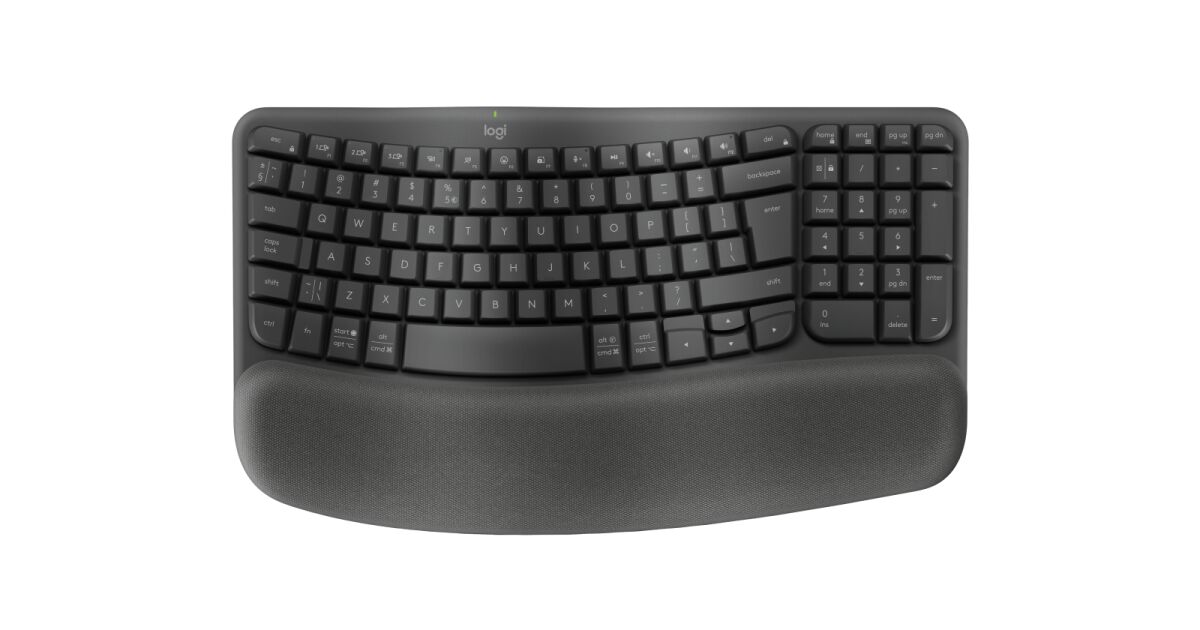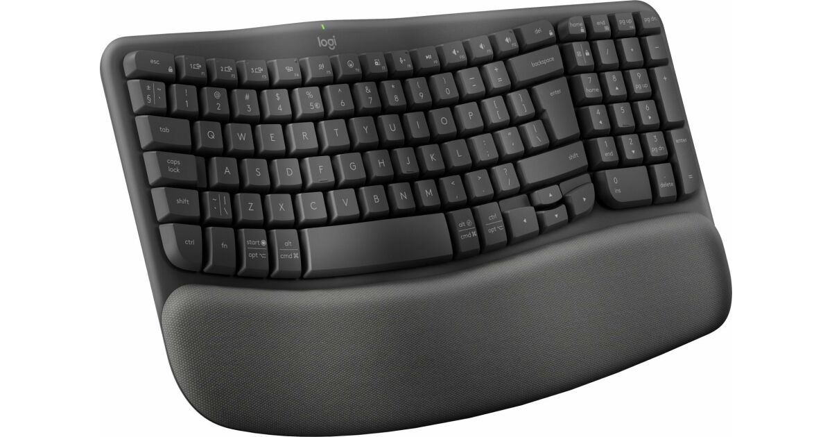Tastatura wireless Logitech Wave Keys, ergonomic design, Palmrest, 2.4GHz&Bluetooth, USB-C, US INTL layout, Graphite Descriere