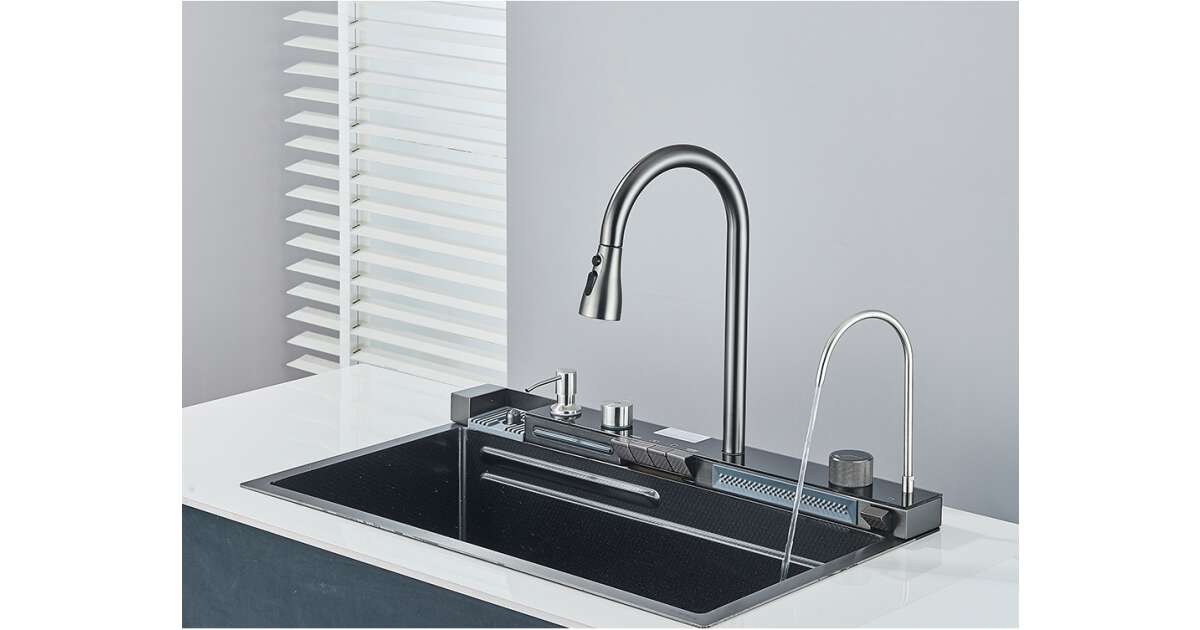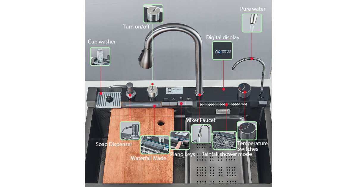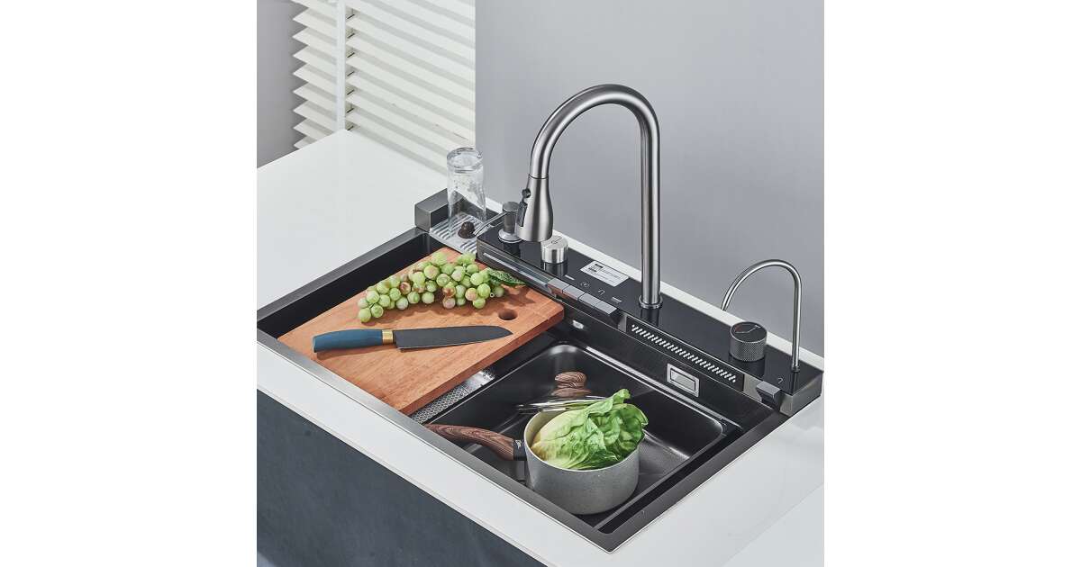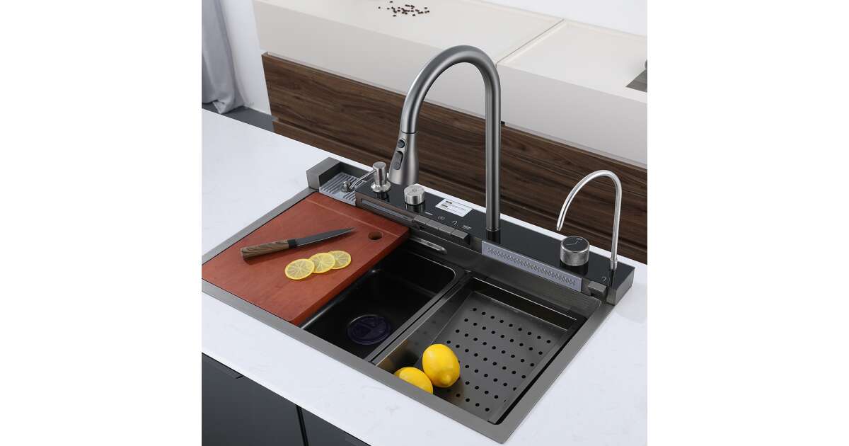 Blackswan C1 Chiuvetă Cascadă 75x46cm: Chiuvetă de Bucătărie Elegantă și Multifuncțională cu Apă Filtrată și Display Digital 💦