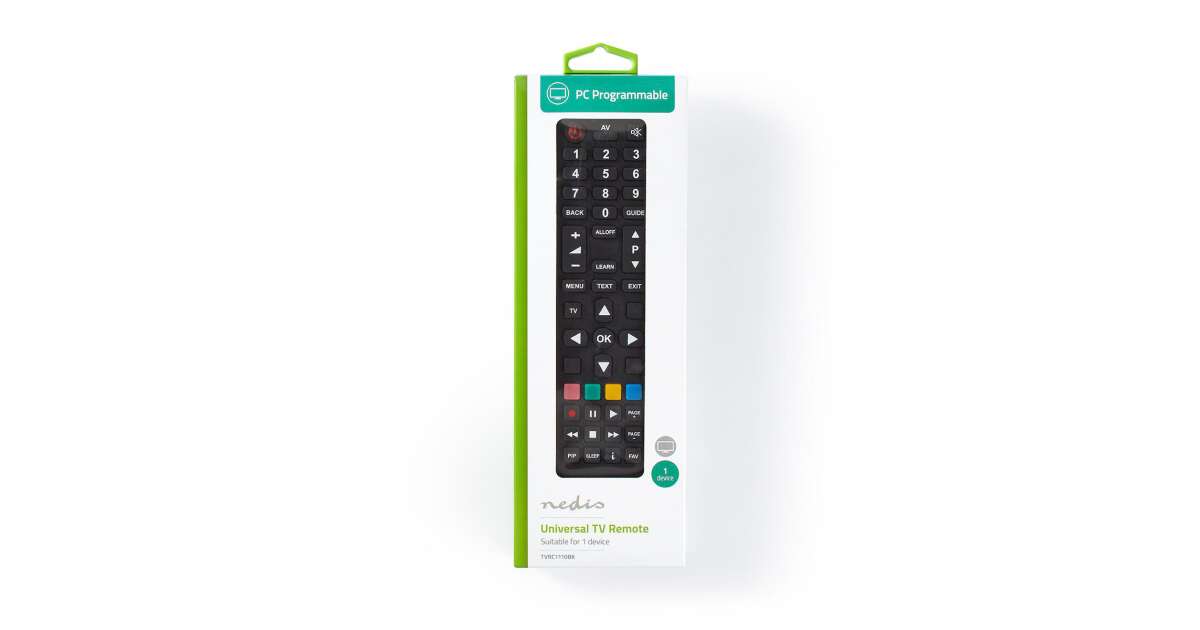 -Nedis Telecomandă universală programabilă pe calculator cu 1 dispozitiv de control (TVRC1110BK) Descriere