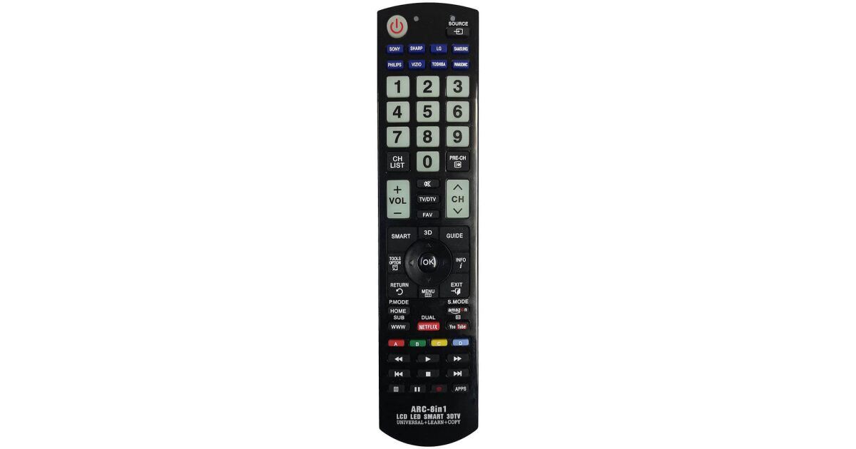 Cu telecomanda universală ARC 8 în 1, poți controla cu ușurință televizorul, DVD player-ul, set-top box-ul și alte dispozitive. Datorită funcției de învățare, poți programa cu ușurință funcțiile telecomenzilor existente.