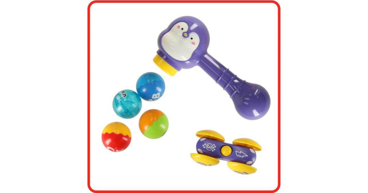 Pista interactivă de minge 3 în 1 cu ciocane de aruncare a mingii pinguin + mașină Descriere
