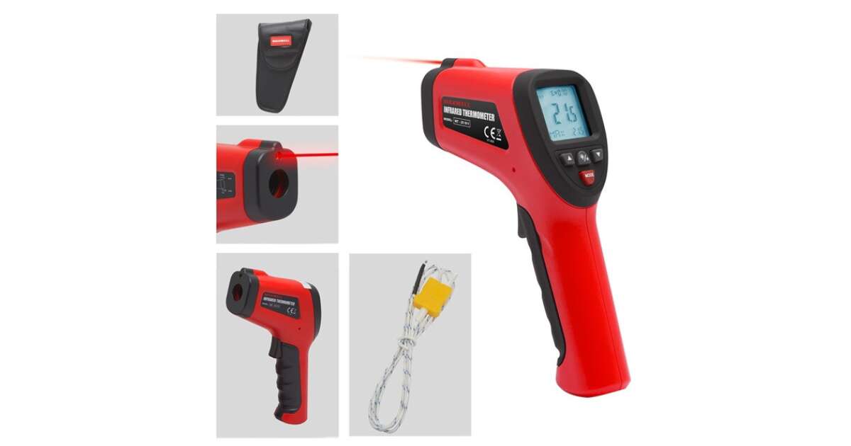 Acest termometru digital cu infraroșu este soluția ideală pentru măsurarea precisă a temperaturii, chiar și în locuri greu accesibile. Dispune de două moduri de măsurare: cu infraroșu fără contact și cu sondă.