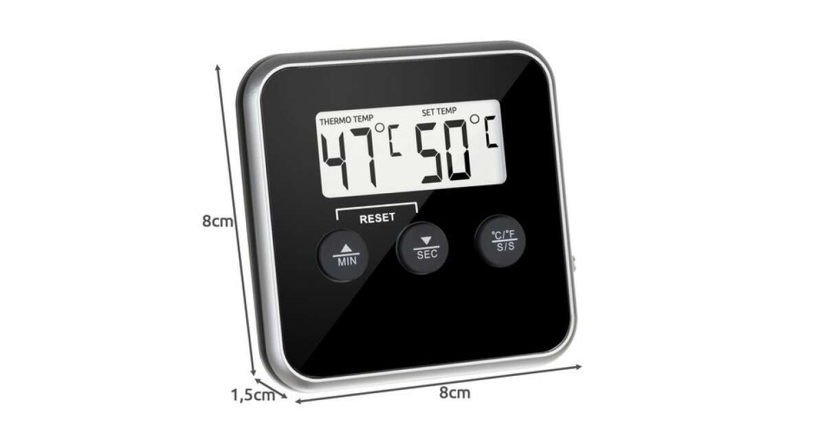 Acest termometru digital de bucătărie asigură măsurarea precisă a temperaturii pentru copt, gătit și grătar. Datorită ecranului LCD mare și ușor de citit, vei ști întotdeauna exact care este temperatura. Cu magnetul integrat, îl poți fixa cu ușurință pe frigider, cuptor sau grătar.