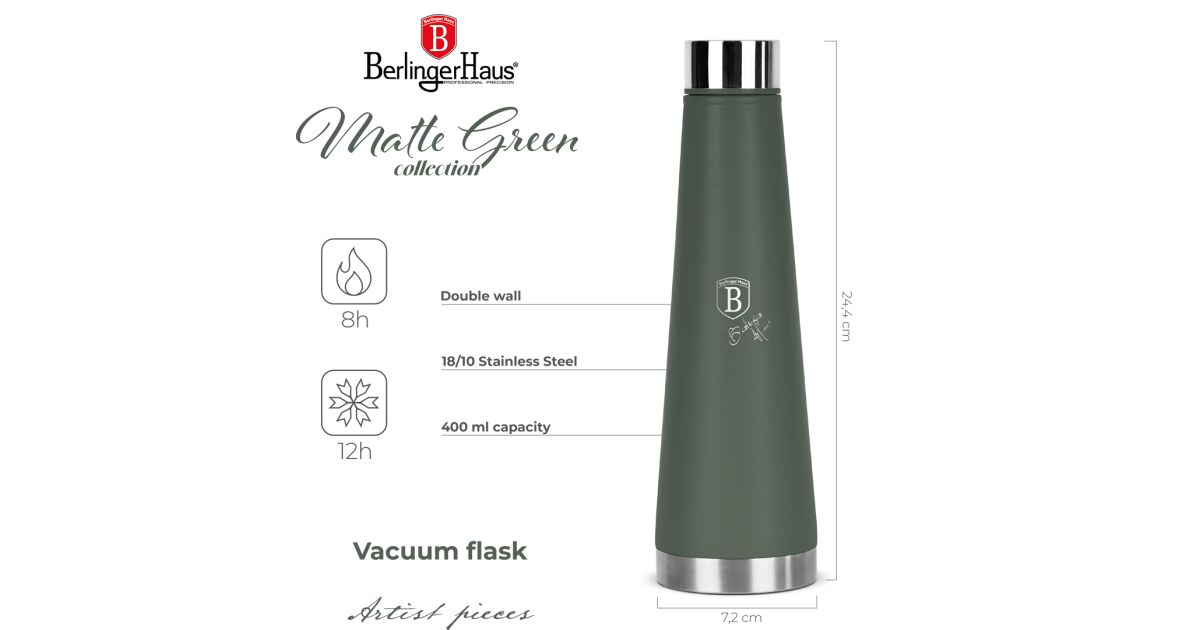Berlinger Haus BH-8748 Matte Green Collection Termos în formă de sticlă 0,4L - Matte Green