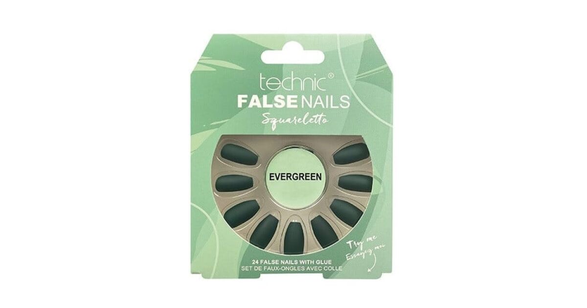Set 24 unghii false, cu adeziv inclus, Technic, False Nails, Squareletto, Evergreen Descriere