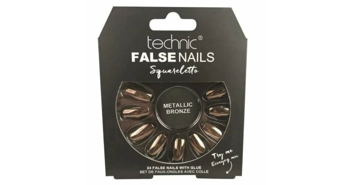 Set 24 unghii false, cu adeziv inclus, Technic, False Nails, Squareletto, Metallic Bronze Descriere