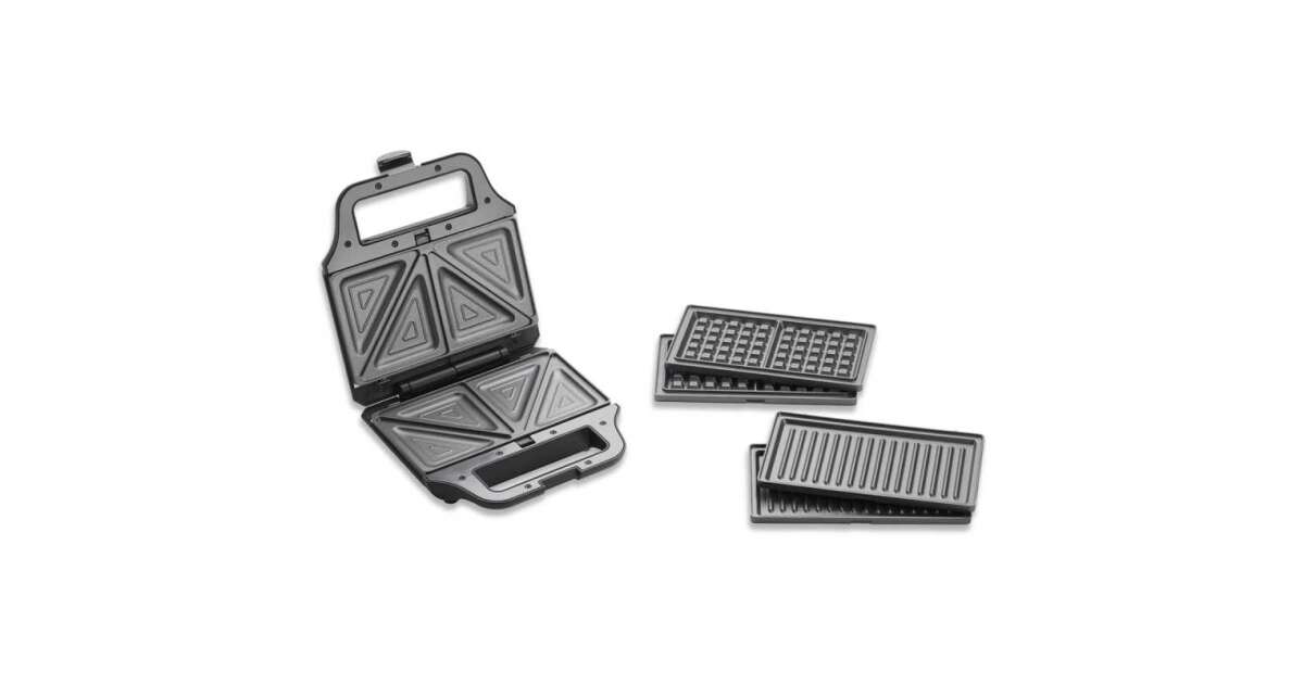 - 3 tăvi interschimbabile, antiaderente: pentru sandwich-uri, gofre, grill