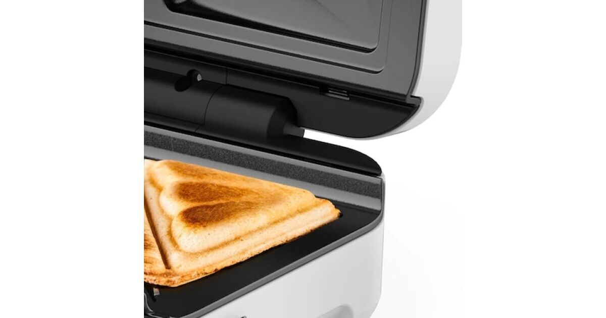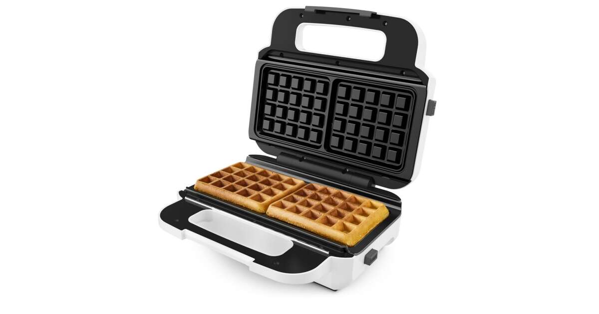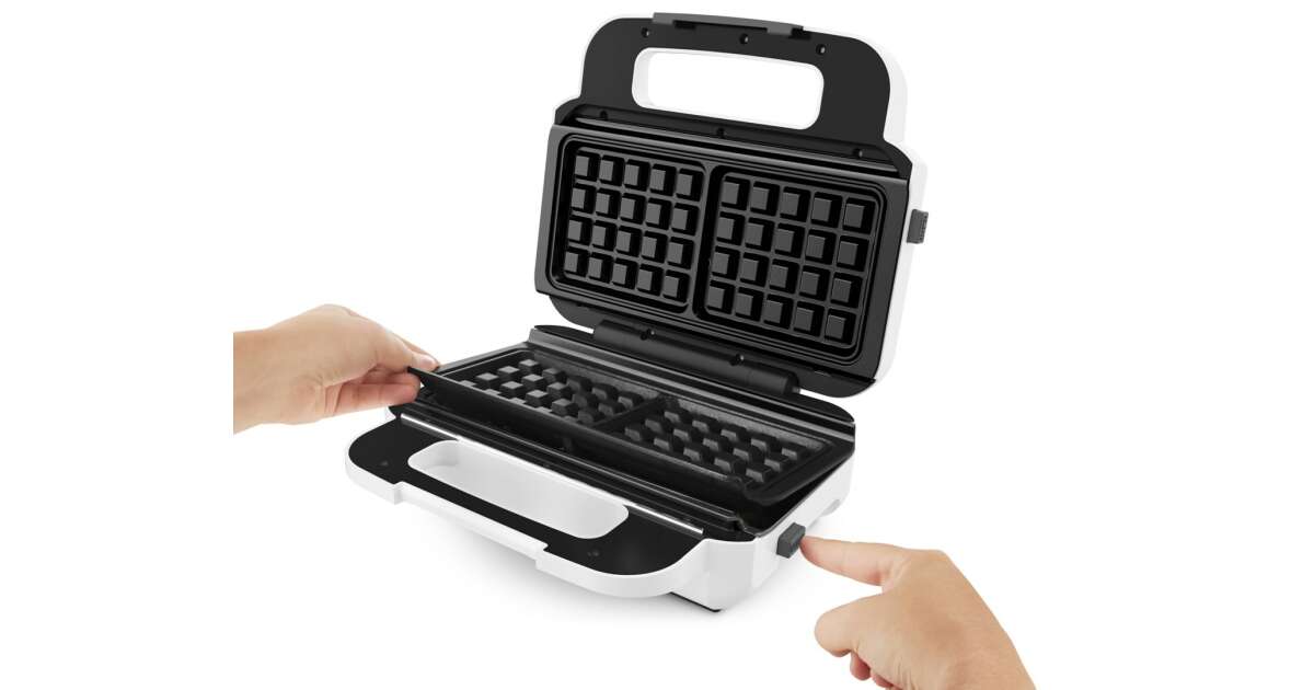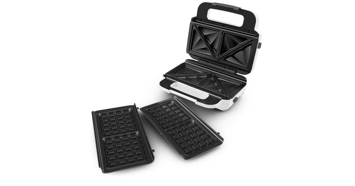- Două plăci interschimbabile: Pentru prepararea sandwich-urilor și waffle-urilor.
