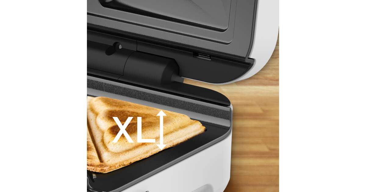 - Mărime XL: Potrivit pentru prepararea unor sandwich-uri și waffle-uri mari.