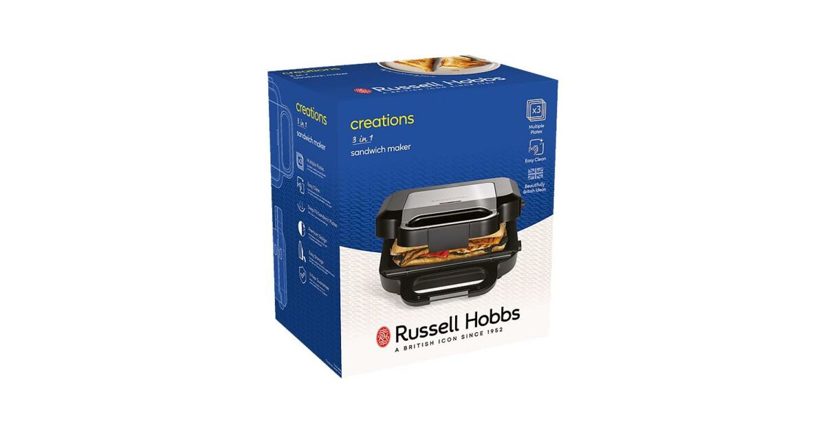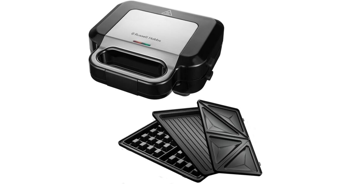 Russell Hobbs 3 în 1: Aparat de făcut sandvișuri, grill și gofre: Perfect pentru micul dejun, prânz și cină 🥪🍳🧇