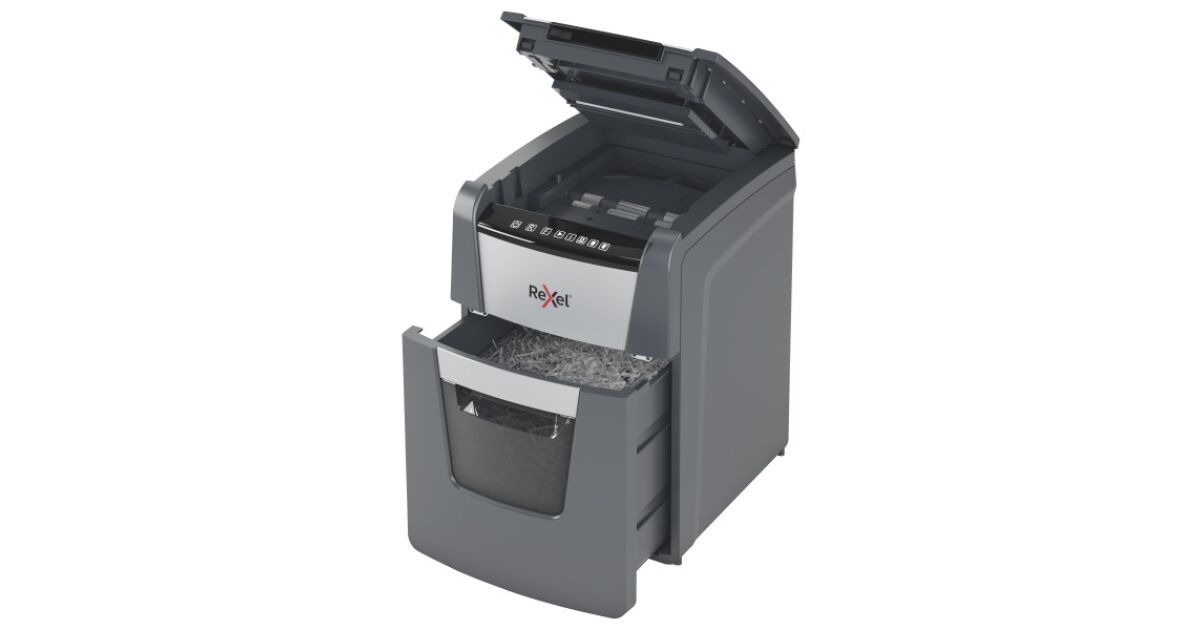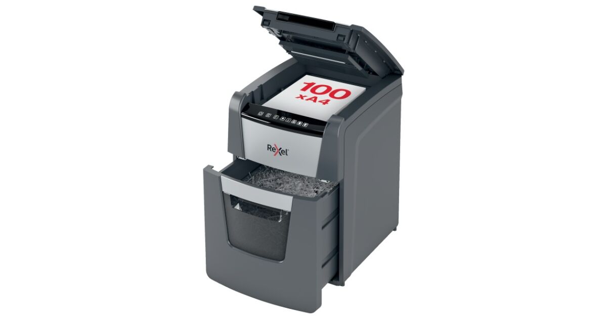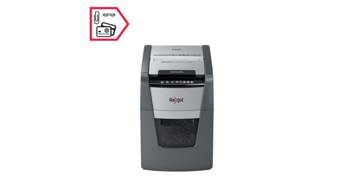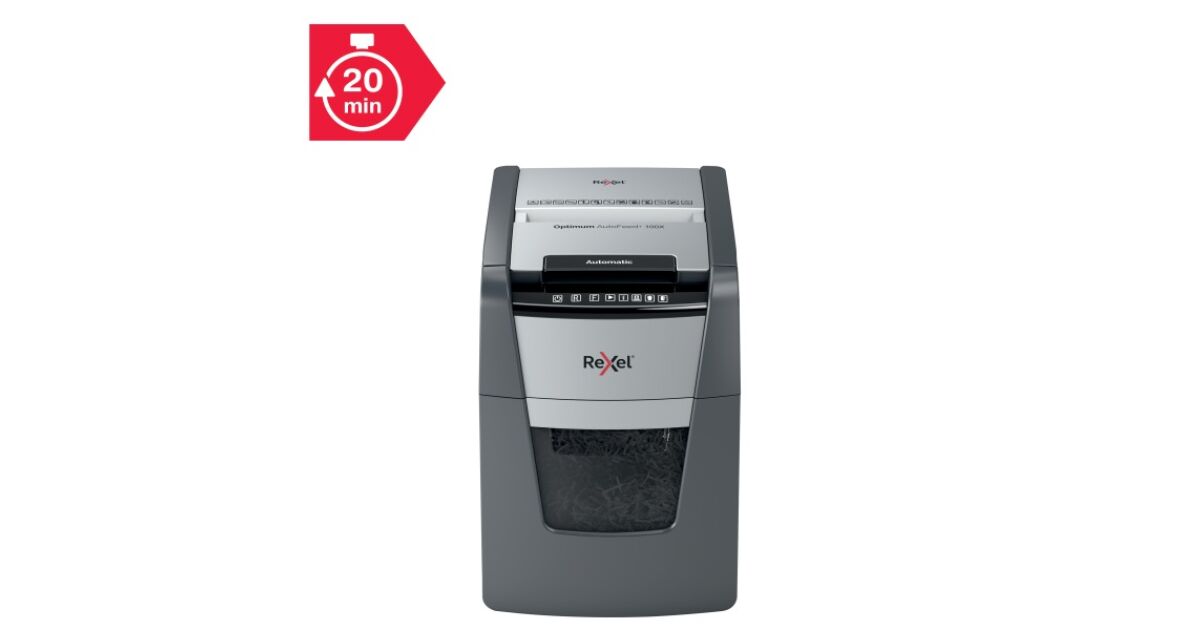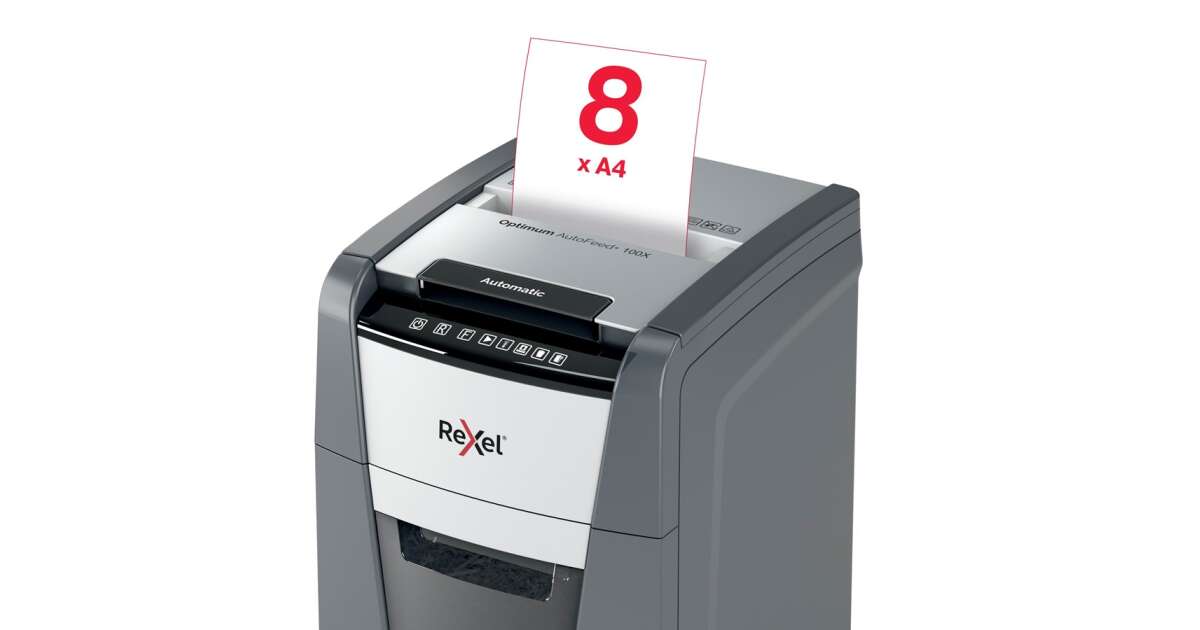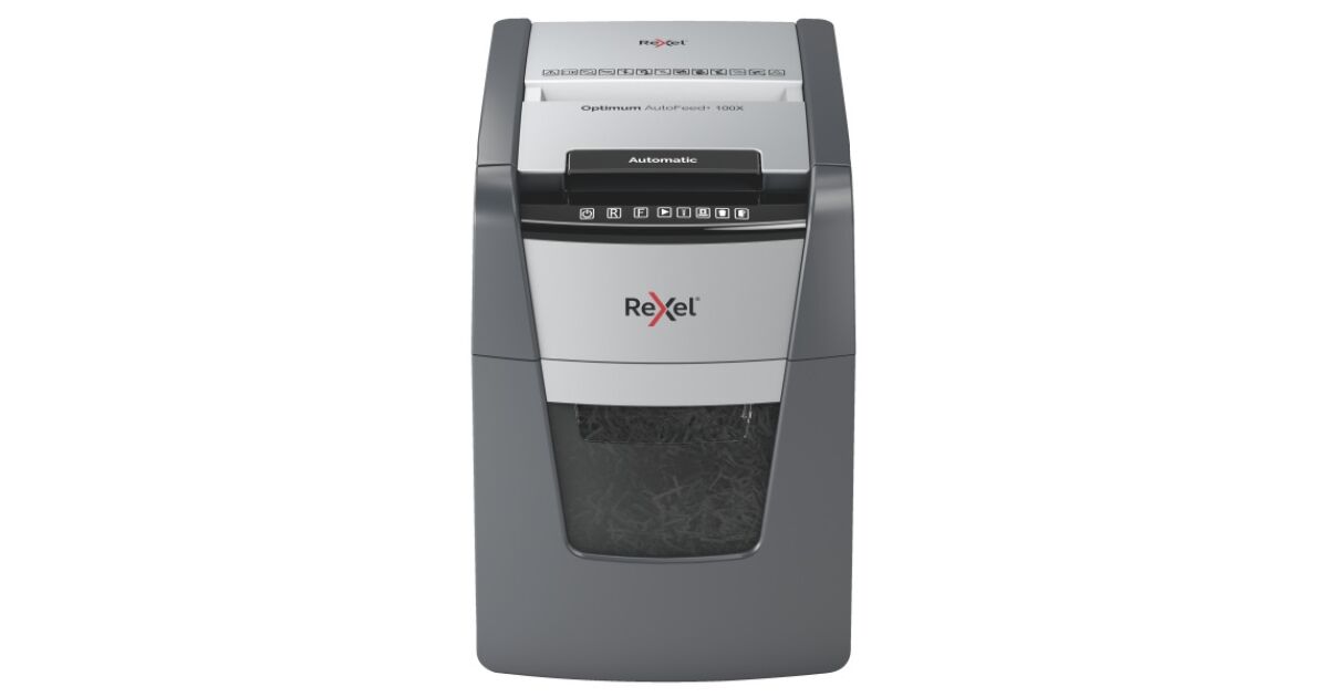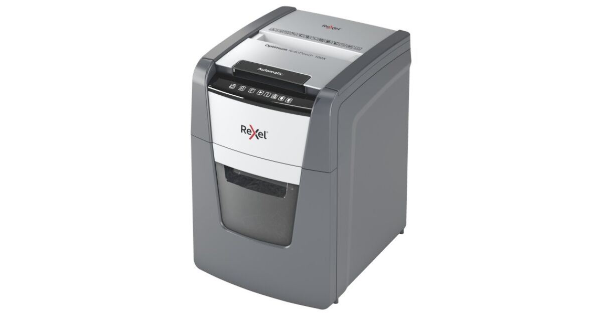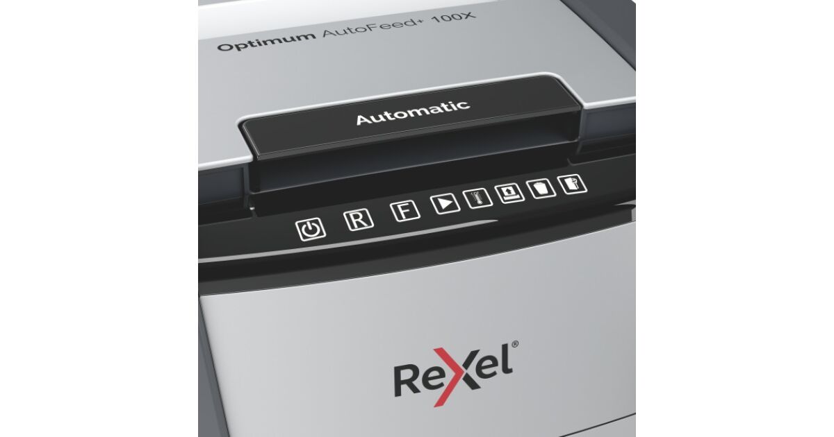 Cu distrugătorul de documente Rexel Optimum AutoFeed+ 100X, îți poți asigura în siguranță documentele, economisind în același timp timp prețios datorită funcționării automate eficiente.
