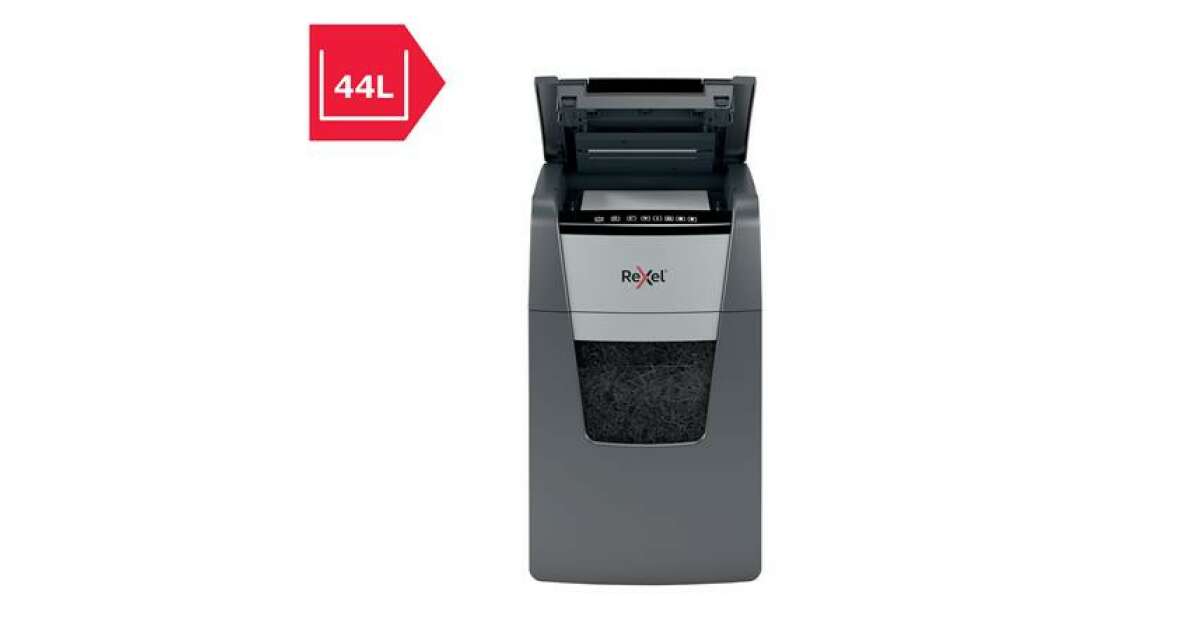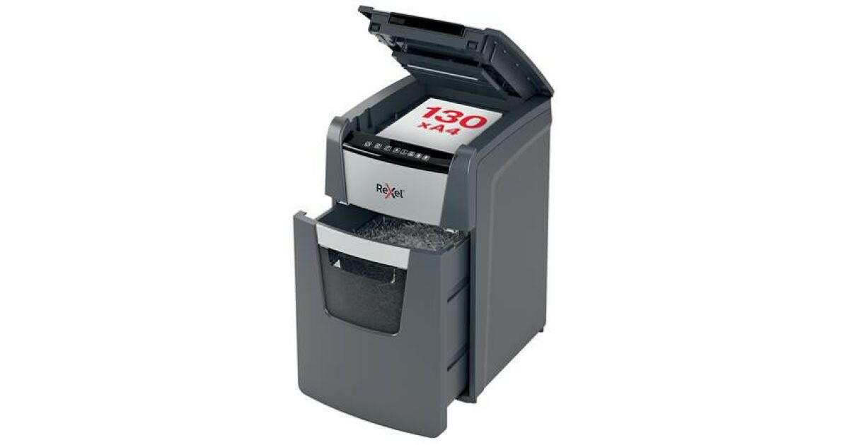 Distrugator documente automat REXEL OPTIMUM 130X, P4, cross-cut (confeti), 130 coli, cos 44l, negru-gri (2020130XEU) Descriere