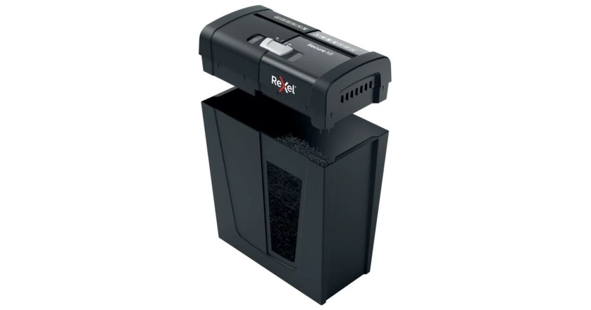 Acest distrugător de documente Rexel Secure X8 este alegerea ideală pentru acasă și birouri mici, dacă îți pasă de protejarea datelor personale. Datorită tehnologiei de tăiere tip confetti (nivel de securitate P-4 DIN), îți distruge garantat documentele confidențiale.