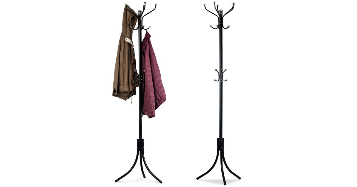 Acest suport de haine elegant și practic este soluția perfectă pentru a-ți ține hainele ordonate acasă sau la birou. Datorită structurii robuste din metal, este extrem de stabil și rezistă chiar și la sarcini mai mari. Cele 16 cârlige oferă suficient spațiu pentru a agăța paltoane, cămăși și alte articole vestimentare. Picioarele de protecție împiedică zgârierea podelei.