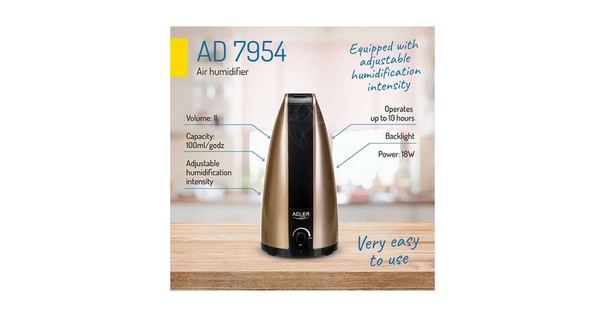 Adler AD7954 Umidificator: Umidificare silențioasă și eficientă, culoare bronz 💧