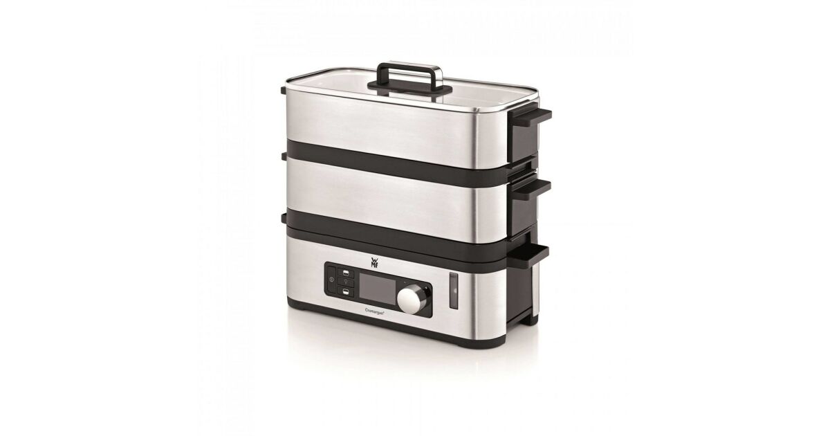 Aparat de gatit cu aburi WMF 415090011, 900 W, Doua zone de gatit, 2 x 2.15 L, Ecran LCD, Inox