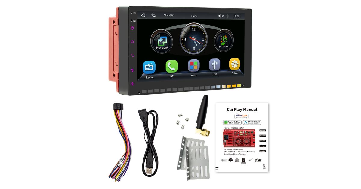2DIN Player Auto MP5 Ecran HD 7", CarPlay, Bluetooth 5.1, WiFi, Radio FM/AM Descriere