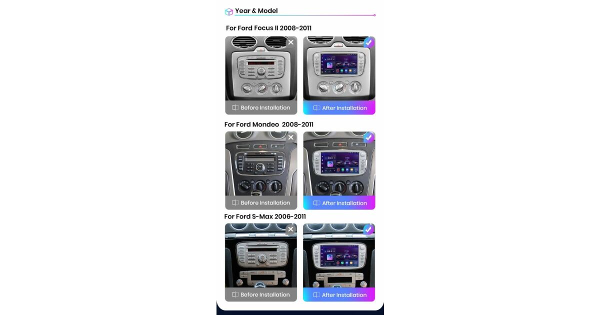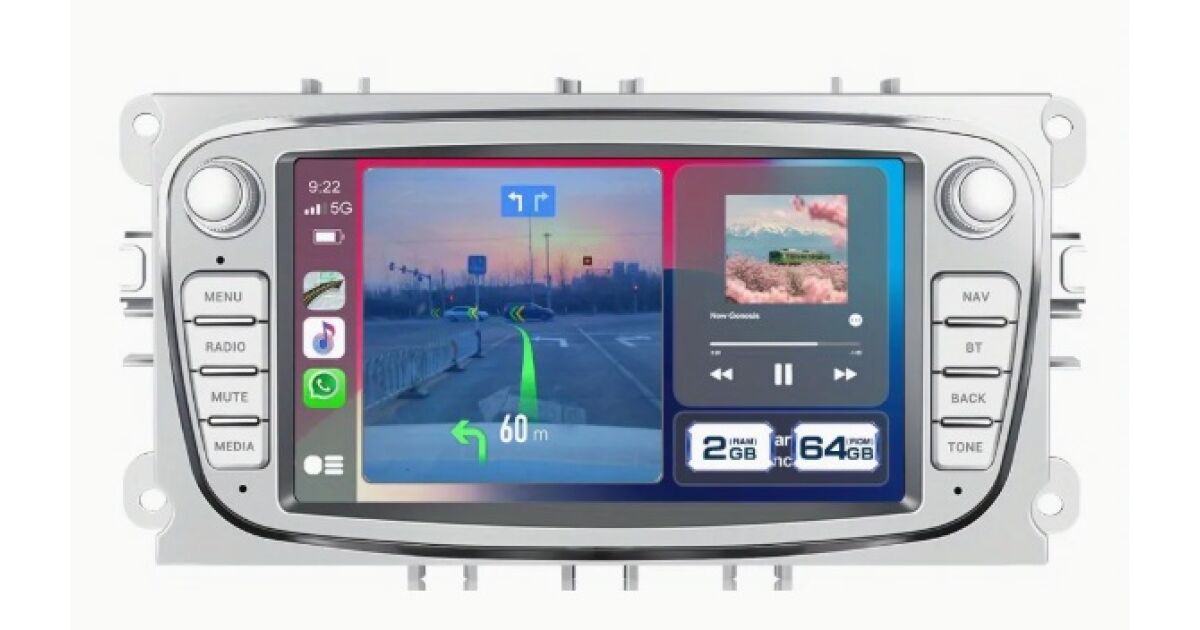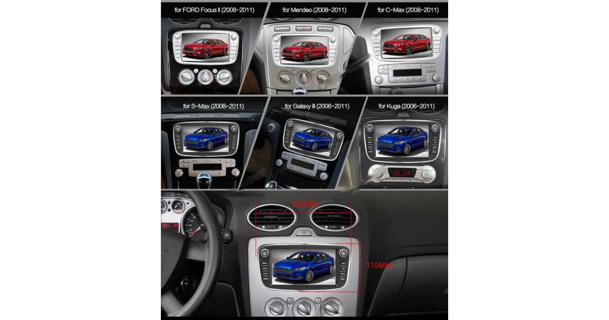 Îmbunătățește-ți Ford-ul cu acest radio auto Android Carplay de 7 inch! Bucură-te de avantajele tehnologiei moderne, cum ar fi Carplay wireless, navigație încorporată și divertisment multimedia. Alegerea perfectă pentru modelele Ford Focus, Mondeo, S-Max, C-Max, Galaxy și Kuga fabricate între 2008 și 2011.