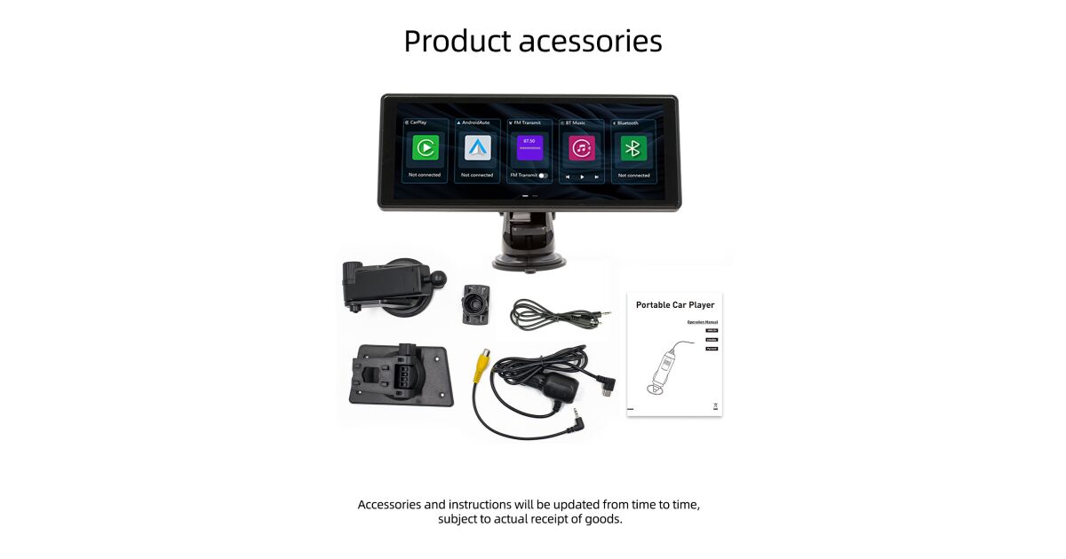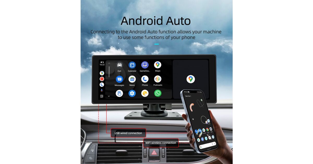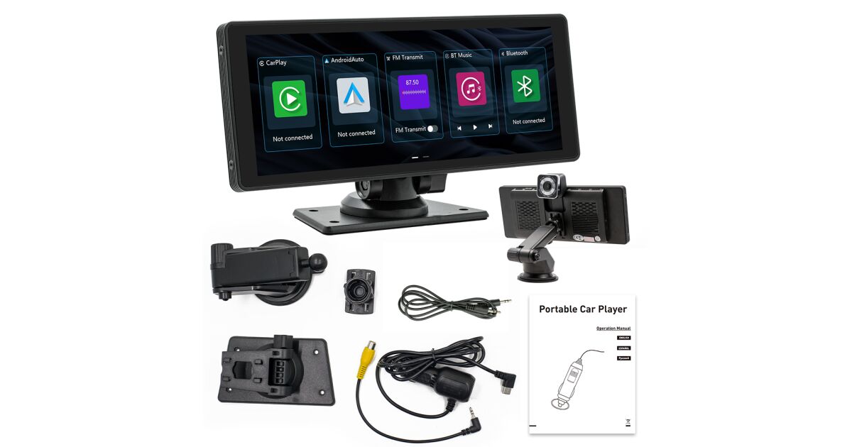 ILIKE Player auto portabil MP5 de 10.26 inci cu cameră integrată, suport CarPlay/Android Auto, Bluetooth 5.0, rezoluție 1600×600 Descriere