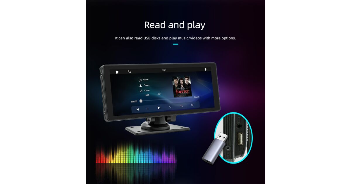 Bucură-te de tehnologia modernă în timp ce conduci cu playerul MP5 portabil ILIKE! Acest dispozitiv versatil are suport CarPlay și Android Auto, cameră încorporată și Bluetooth 5.0, astfel încât fiecare călătorie să fie confortabilă și distractivă.
