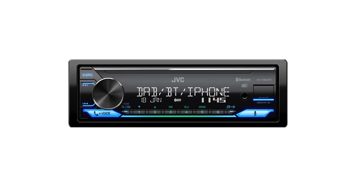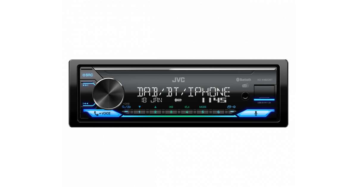 Înveselește-ți mașina cu această unitate principală multifuncțională JVC! KD-X482DBT nu oferă doar un sunet excelent, ci și efecte de lumină uimitoare.