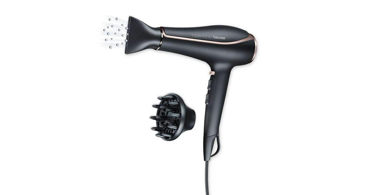 Uscator de par Beurer HC 80, 2200 W, Tripla ionizare, Motor AC, 3 setari temperatura, 2 viteze, Accesorii, Negru