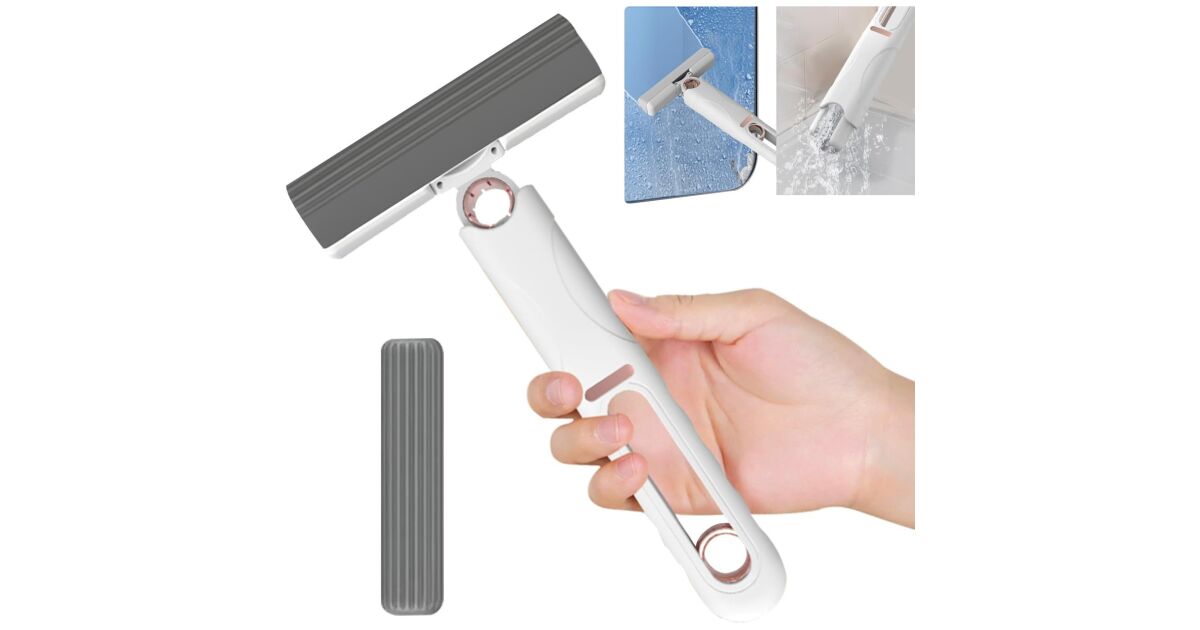 Mop de mana KipHome, mini-portabil, cu sistem de stoarcere, dispozitiv de curatat manual, cu burete absorbant, material PVA, multisuprafete si geamuri, 29.5 x 15.5 cm, alb Descriere