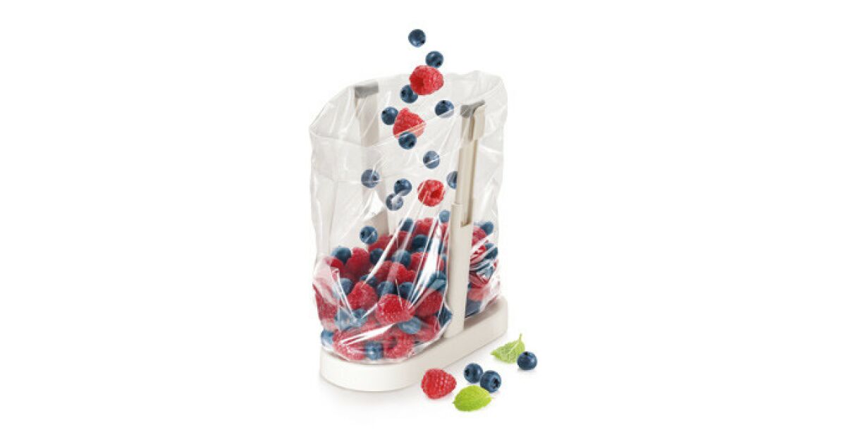 Bucură-te de umplerea comodă și eficientă a pungilor cu suportul Tescoma FlexiSPACE!