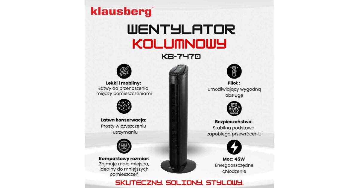 Ventilator tip turn Klausberg - 74 cm: Răcorire eficientă, spațiu minim ocupat 💨