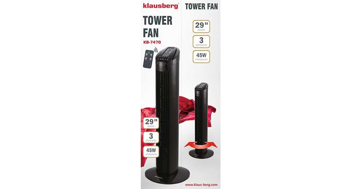 Bucură-te de o briză plăcută cu ventilatorul tip turn Klausberg de 74 cm! Acest dispozitiv elegant și compact asigură un flux de aer intens, cu trei trepte de viteză și trei moduri diferite. Datorită afișajului LED și telecomenzii, poți controla cu ușurință funcționarea ventilatorului.