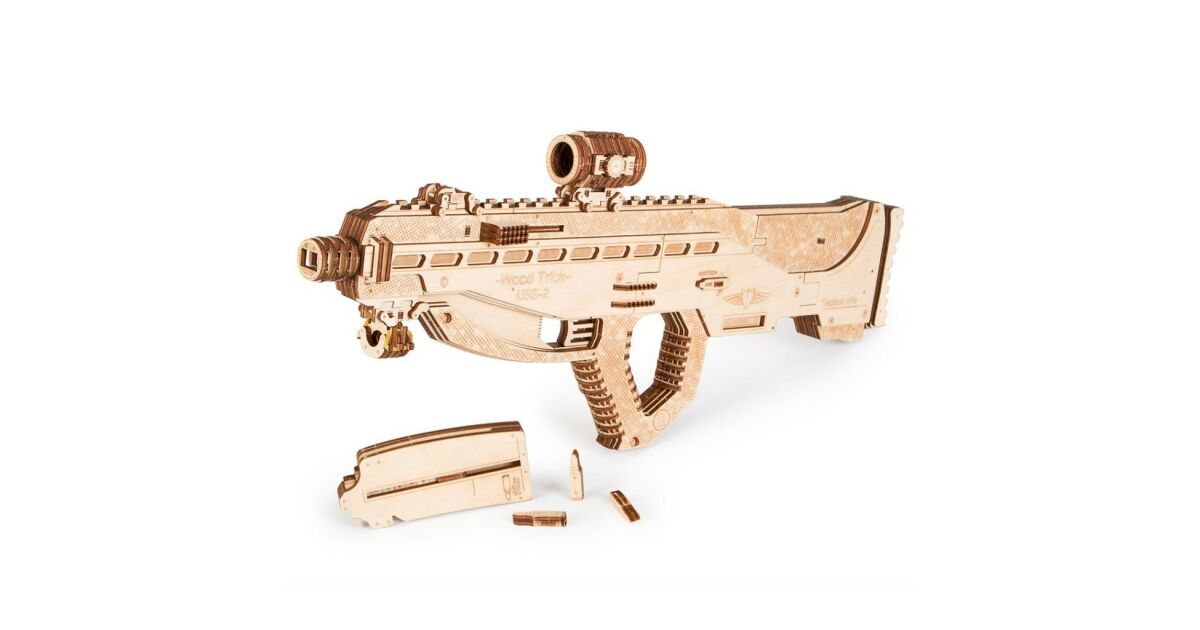 Mechanické 3D puzzle, guľomet USG-2, WT, drevo, 251 dielikov popis