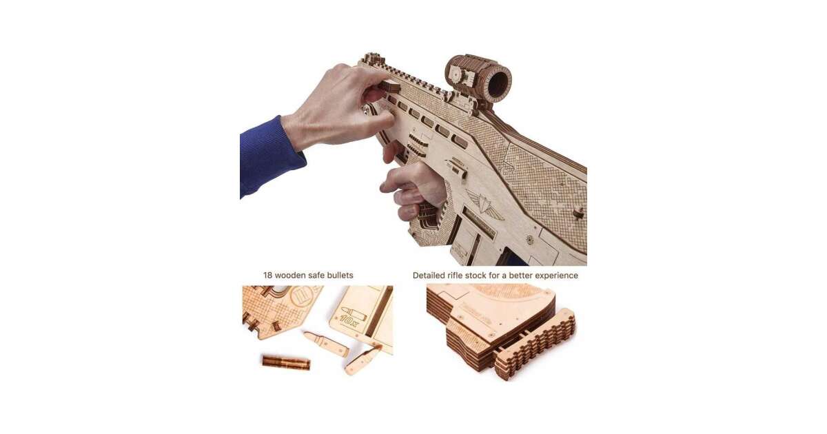 Priprav sa na vzrušujúce staviteľské dobrodružstvo s týmto 251-dielnym 3D puzzle z prírodnej preglejky z brezy! Táto útočná puška nie je len hračka, ale aj kreatívna výzva, ktorá rozvíja tvoje konštrukčné a problémové riešiteľské schopnosti.