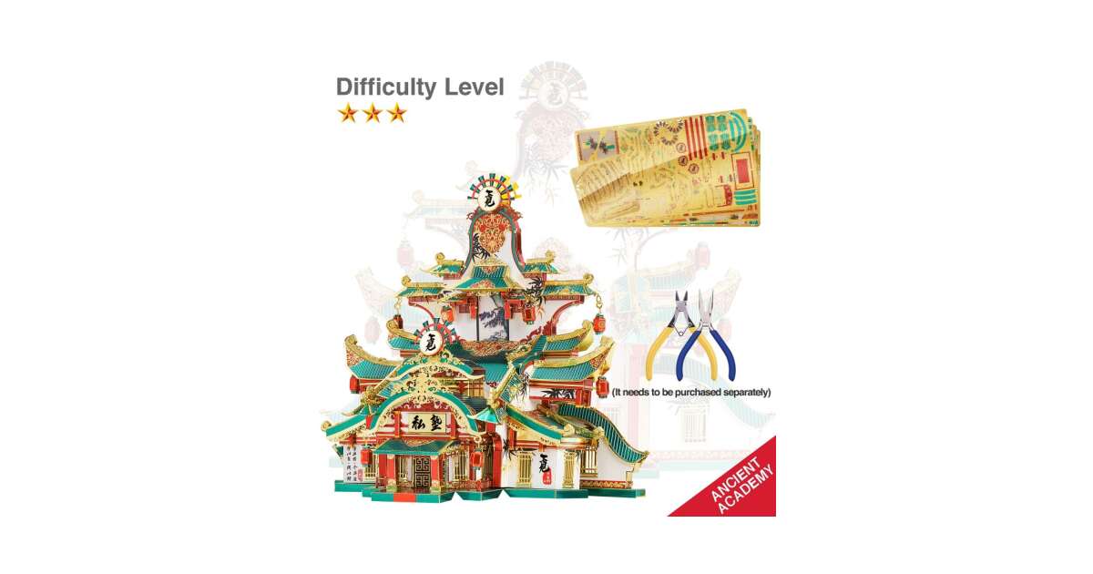 Piececool Staroveká akadémia 3D kovové puzzle: Postavte si kúsok čínskej histórie! 🏯