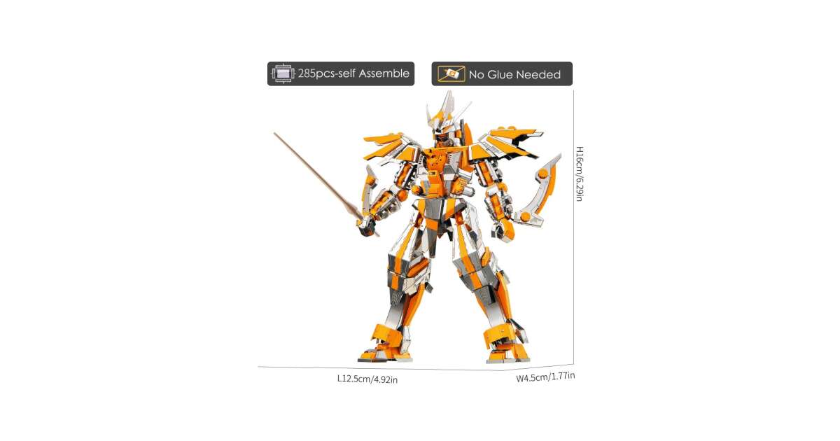 Priprav si svojho vlastného úžasného robota s polmesiacovou čepeľou a pancierom s týmto detailným 3D kovovým puzzle so 155 dielikmi! Tento ohromujúci model je skutočnou výzvou pre milovníkov puzzle, ktorí majú radi detailnú a precíznu prácu. Výsledkom je nádherný robot vyrobený z kovu, ktorý môže byť dokonalou ozdobou tvojho stola alebo police.