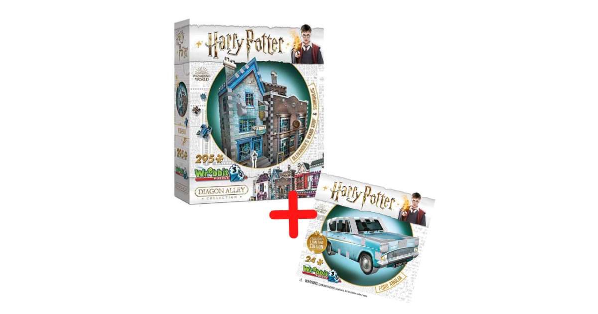 Wrebbit Harry Potter 3D exkluzívne puzzle - Obchod s prútikmi pána Ollivandera 295ks + darček