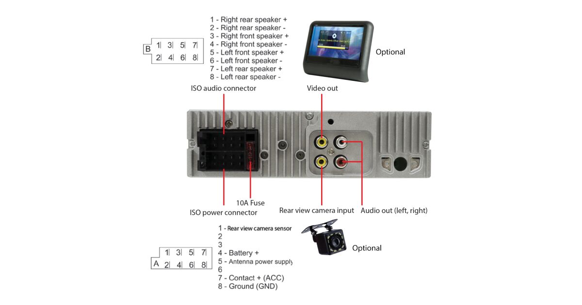 - 2 RCA konektory (1 AV vstup/výstup, 1 vstup pre cúvaciu kameru) 📹