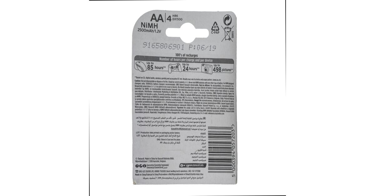 Batérie Duracell R6 Ni-MH kód 81418263 blistre s 2500 mAh 4 bc popis